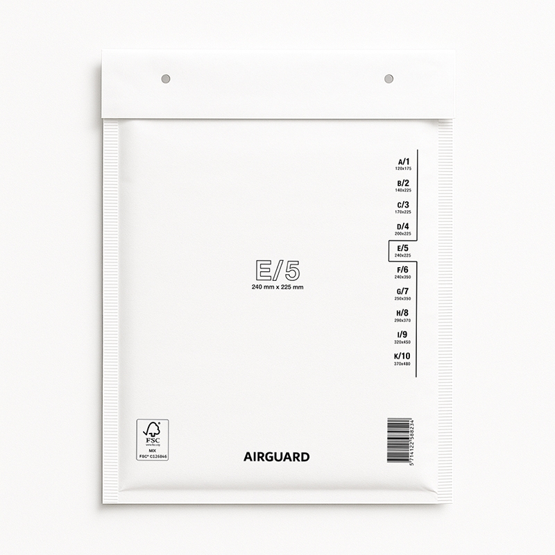 AirGuard Bubble Padded Envelope E5 - Internal Dimensions: 220x265mm, External Dimensions: 240x275mm