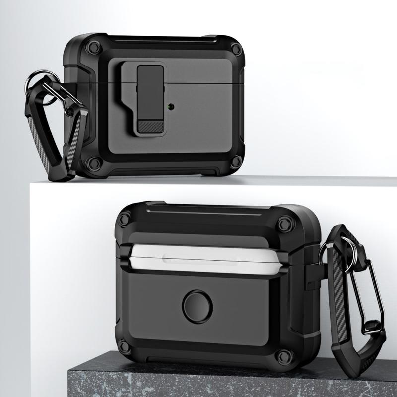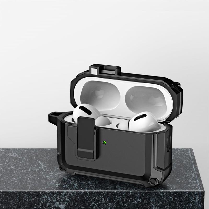 AirPods Pro (Gen 2) (USB-C) / Pro 2 Nárazuvzdorné pouzdro TPU+PC Bluetooth Earbuds Charging Case Cover with Buckle - černé