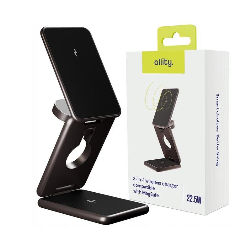 Allity AWC-230-225WMS 3-in-1 MagSafe Wireless Charger 22.5 W - Foldable Dock for iPhone, Apple Watch & AirPods