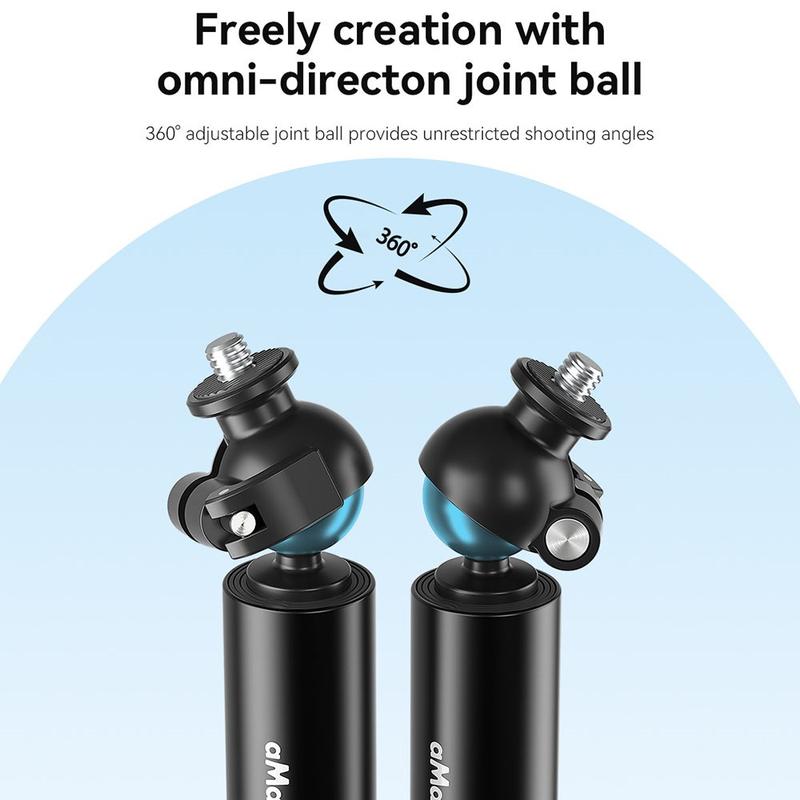 Amagisn Sports Camera Selfie Stick with Ball Head & 1/4" Screw for DJI, GoPro, Insta360
