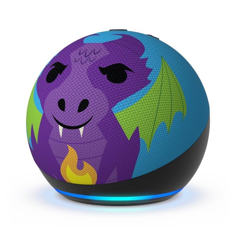 The Amazon Echo Dot Kids (5th Gen.) Smart Speaker is our most popular and cutest smart speaker designed specifically for kids. With Alexa, kids can enjoy music, bedtime stories, homework help, and more. The improved speaker delivers clearer vocals and rich, vibrant sound for an enhanced listening experience.