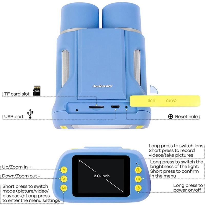 The ANDONSTAR AD122 is an innovative 2-in-1 kids’ microscope and telescope designed to spark curiosity and inspire exploration. Its dual-lens system lets children examine tiny details with the microscope lens while also viewing faraway objects with the telescope lens — all through a safe, built-in 2-inch HD display. Lightweight, portable, and equipped with a rechargeable 900 mAh battery, this digital binocular device is perfect for outdoor adventures, science projects, and everyday discovery.