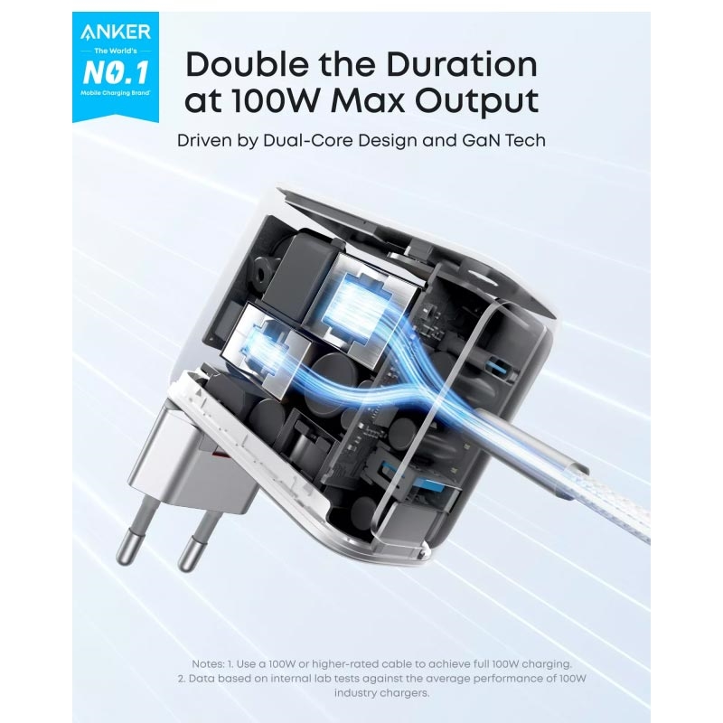 - 100W maximum total output for high-speed multi-device charging