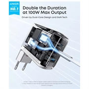 The Anker 100W GaN wall charger with smart display is a powerful and compact charging solution designed for users who need fast, efficient charging for several devices at once. With 2 USB-C ports, 1 USB-A port, advanced GaN technology, and a built-in digital display, it gives you a smarter and more convenient way to power laptops, smartphones, tablets, earbuds, and other everyday devices.