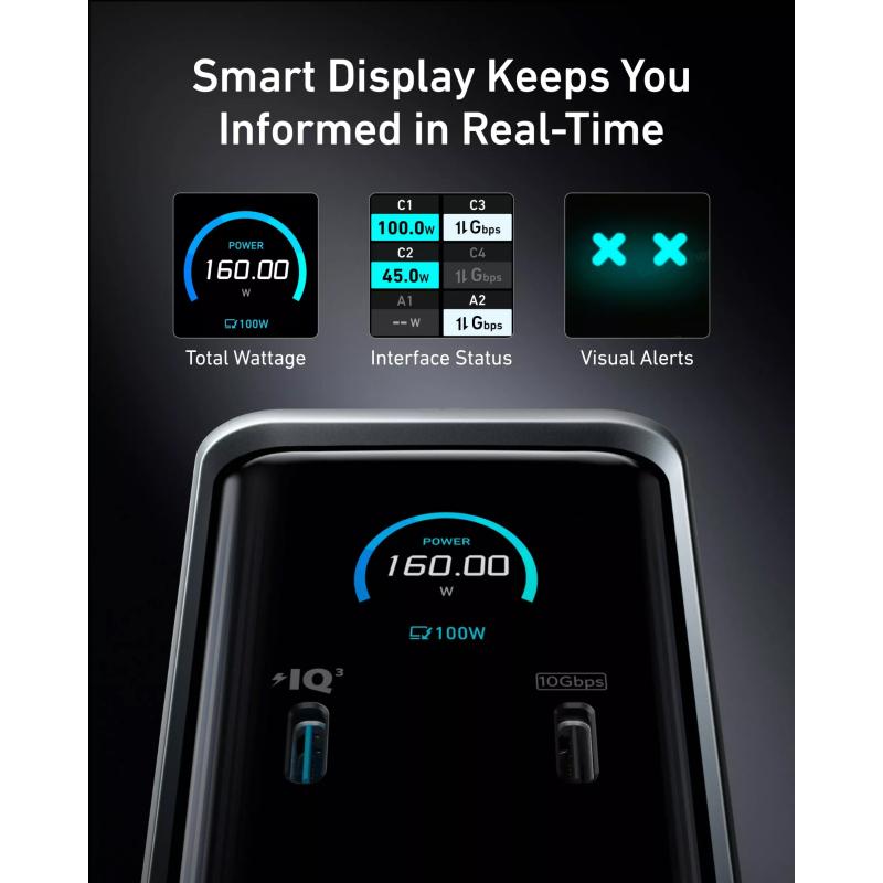- 160 W Shared Output – Four USB-C ports deliver up to 100 W each, while five USB-A ports share 12 W for phones, drives and accessories.