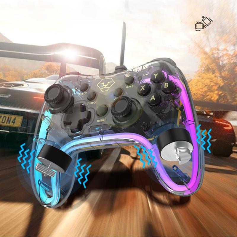 AOLION pro počítač Nintendo Switch Transparentní drátový gamepad RGB Light Game Controller
