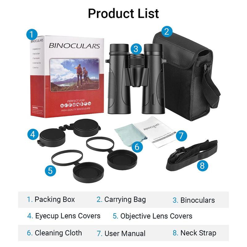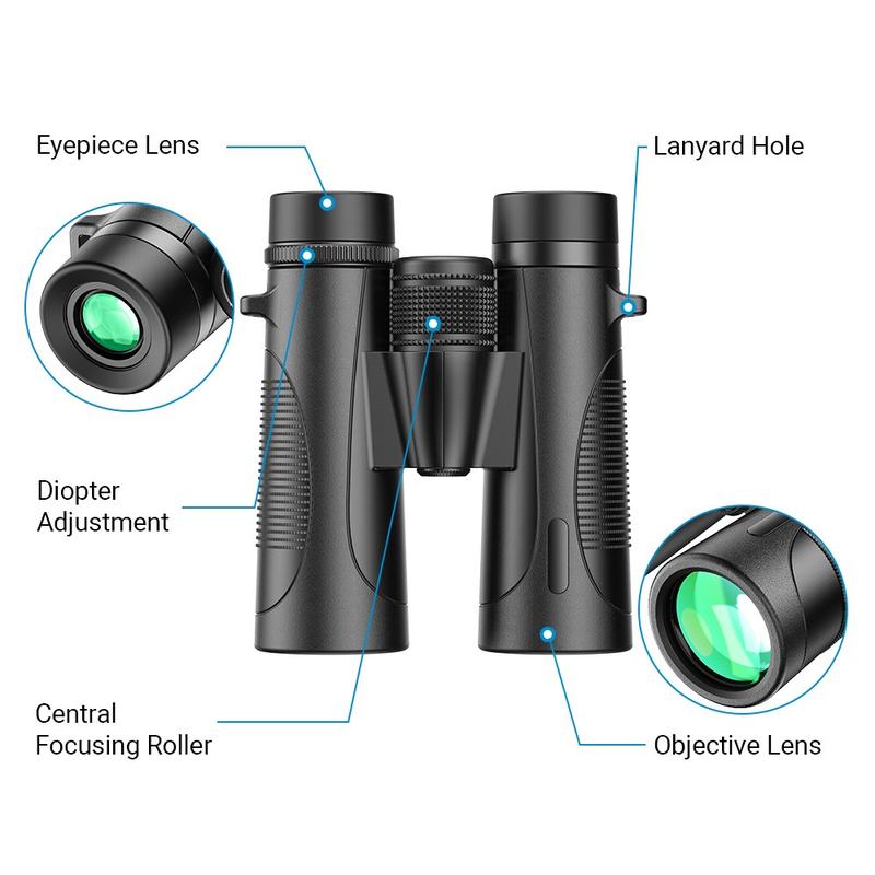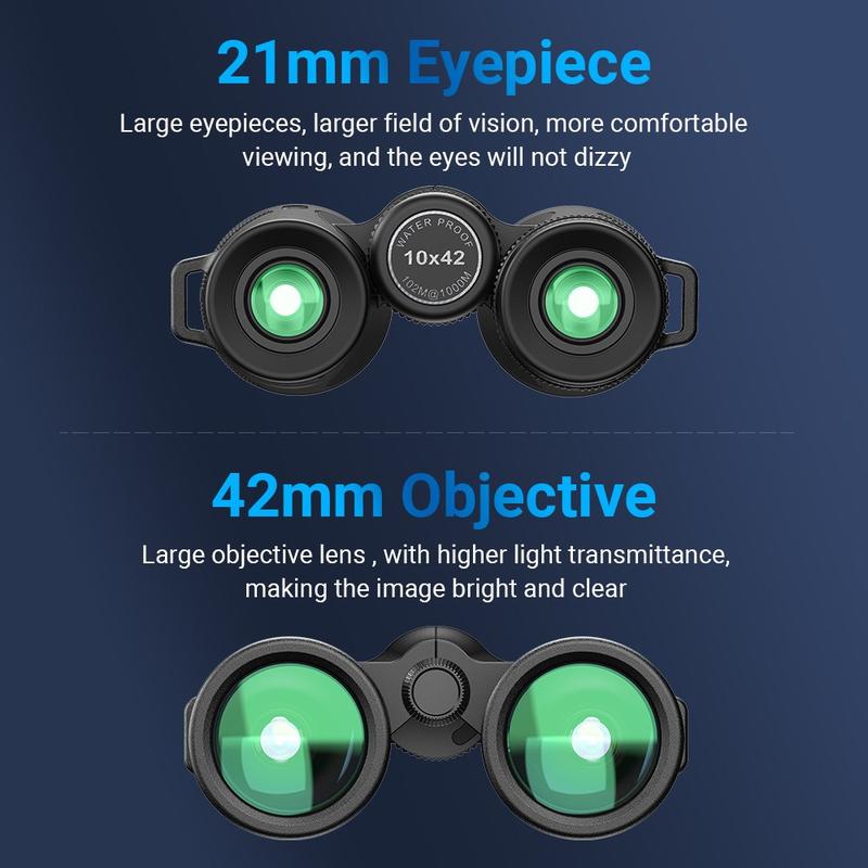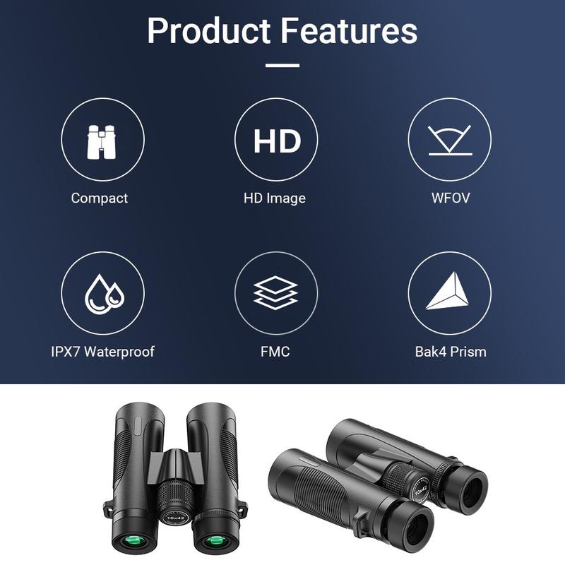 The APEXEL 10x42 HD binoculars deliver exceptional clarity, brightness and durability for outdoor exploration. Featuring a large 42 mm objective lens, BAK4 roof prism and fully multi-coated (FMC) optics, they offer sharp, high-contrast imaging with excellent light transmission—ideal for bird watching, wildlife observation, hiking, concerts and sporting events.