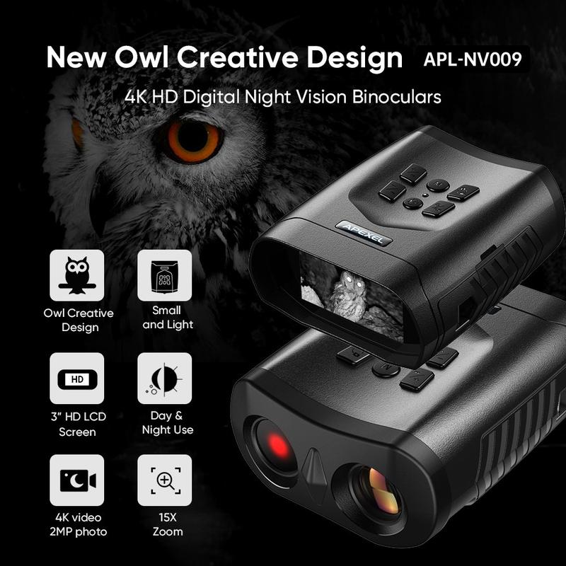Experience unparalleled clarity in low-light conditions with the APEXEL APL-NV009 Digital Night Vision Binocular. Combining 5X optical zoom, 3X digital zoom, and a 3-inch high-resolution IPS display, this portable device is perfect for capturing stunning 4K videos and detailed 2–12MP photos day or night. Its ergonomic, owl-inspired design and built-in infrared illumination make it a must-have for outdoor exploration, wildlife observation, and security surveillance.