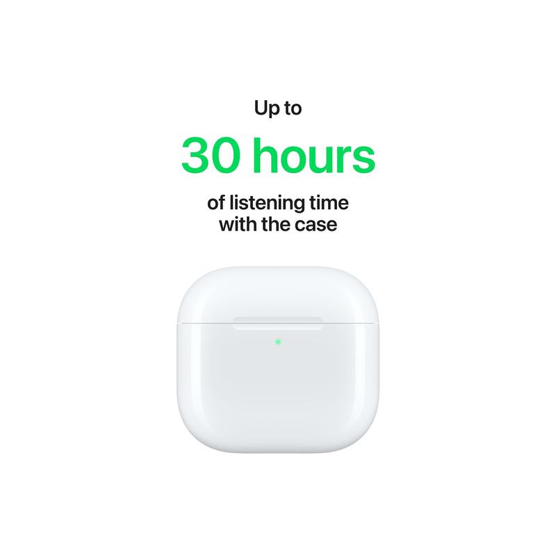 Experience a new level of audio with the Apple AirPods 4. Redesigned for a snug fit and optimized sound, they feature the powerful H2 chip for clearer calls with Voice Isolation and seamless Personalized Spatial Audio. Rated IP54 for dust, sweat, and water resistance, these AirPods keep up with your active lifestyle. Enjoy up to 30 hours of listening time with the USB-C charging case, and stay connected with Bluetooth 5.3.