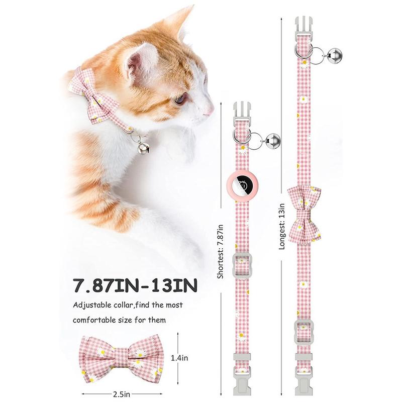 Silicone Case with Daisy Pattern Pet Collar and Bow for Apple AirTag 1, AirTag 2