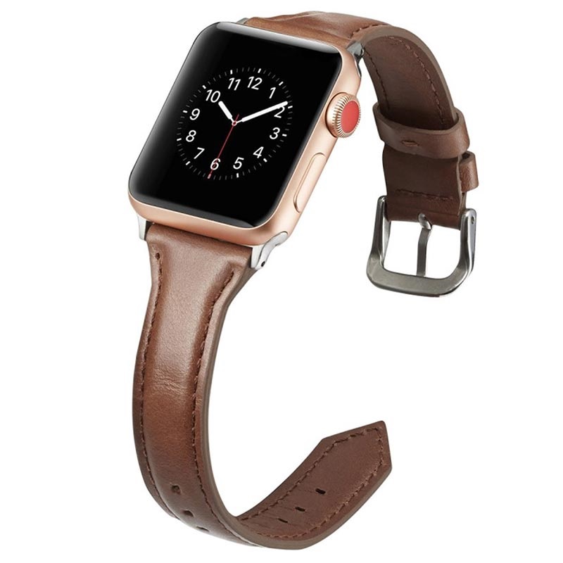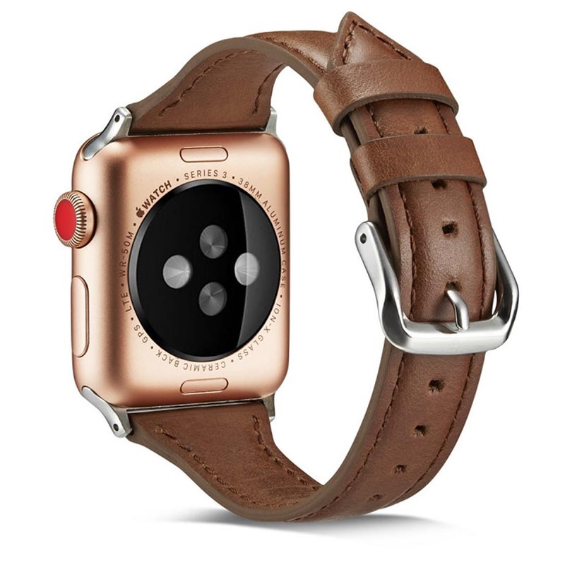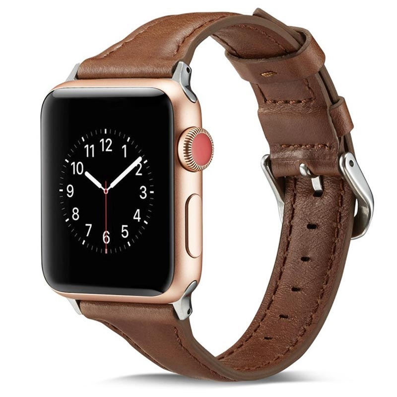 Apple Watch Series 11/10/9/8/SE 3/SE (2022)/7/SE/6/5/4/3/2/1 Slim Leather poprup - 42mm/41mm/40mm/38mm - Káva