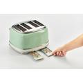 The Ariete 156 Vintage Electric Toaster is a stylish addition to any kitchen, featuring a retro design with pastel colors and a metal body. This toaster offers four slots with independent 2x2 controls, allowing you to toast, heat, or defrost slices to perfection across six browning levels. The automatic ejection feature ensures safe and easy retrieval of your toast, while the removable crumb tray and cord compartment make cleaning and storage simple. Its cold-wall design adds safety to its functionality.