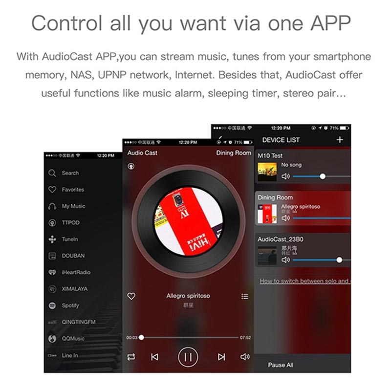 Using WiFi instead of Bluetooth, the Audiocast M5 provides stable, high-quality audio streaming throughout your home. The WPS one-button connection makes setup quick and simple, avoiding complicated network configuration.