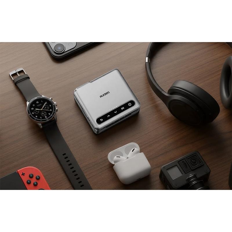 Aurzen ZIP Tri-Fold Portable Mini Projector - DLP 720p, 100 ANSI Lumens, 5000mAh Battery, Vertical Full-Screen, Instant Mirroring