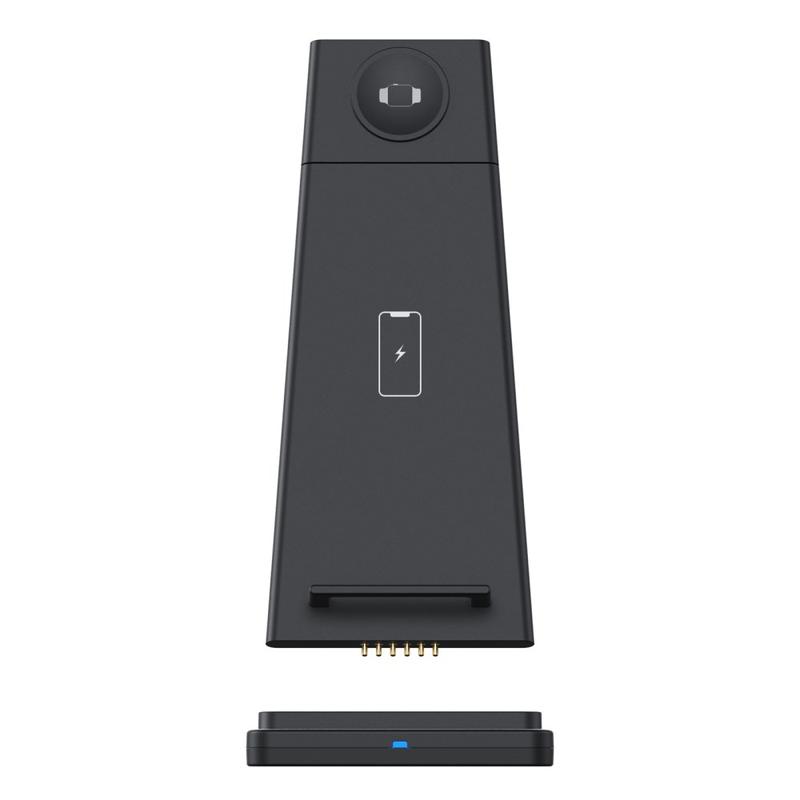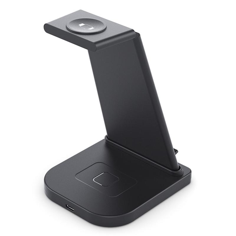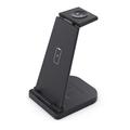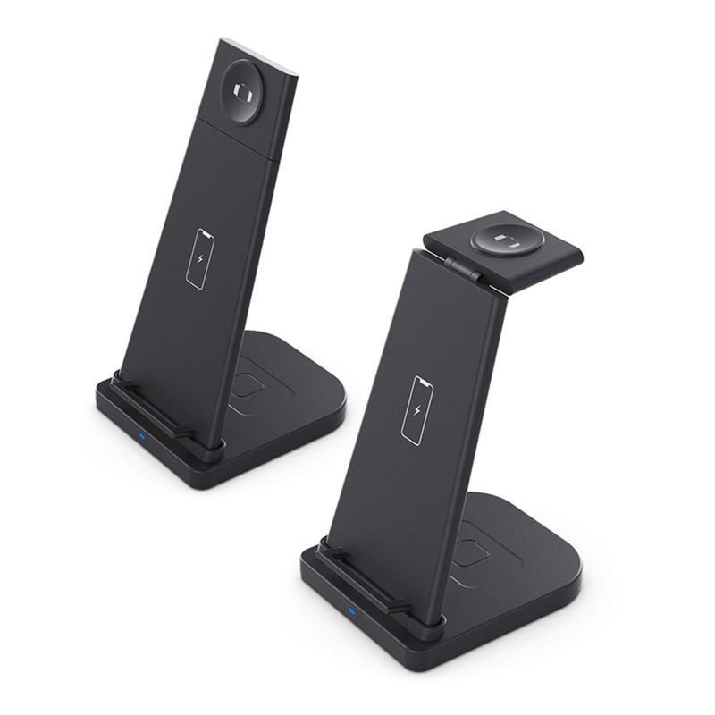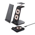 B-12 Univerzální stolní nabíječka 3 v 1 s 15W bezdrátovým nabíjecím skládacím stojanem pro mobilní telefon / sluchátka / chytré hodinky - černá