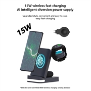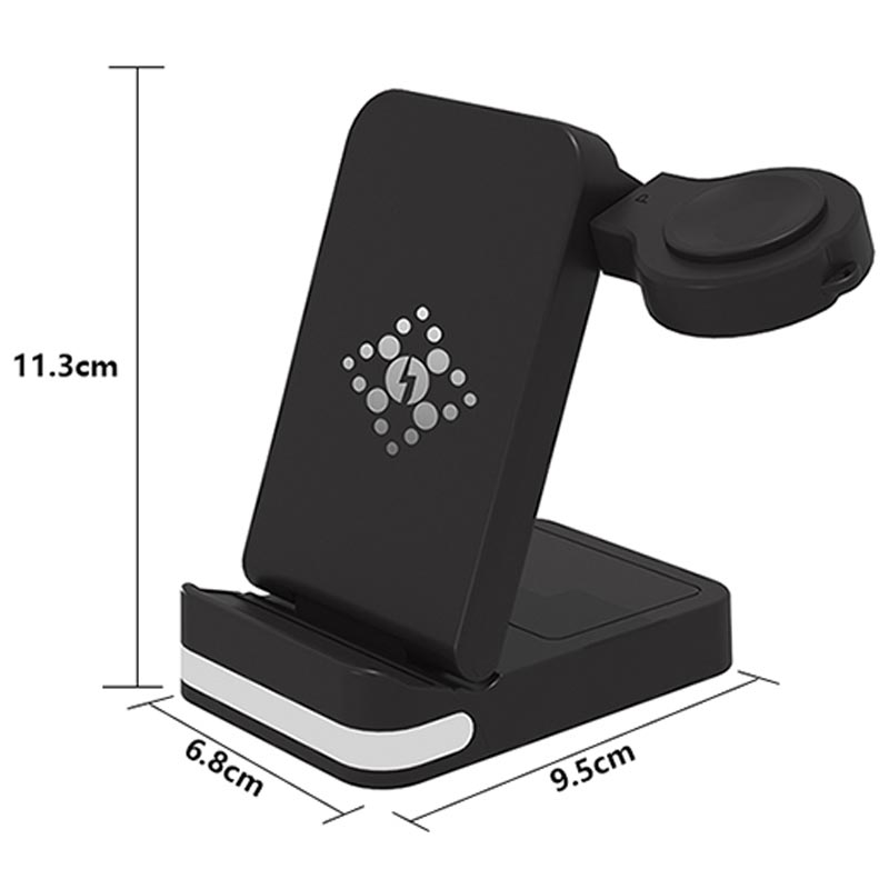B-27 3-in-1 Foldable Wireless Charger with Night Light - 15W - Fast Charging for Smartphones, Earphones, and Samsung Galaxy Watch