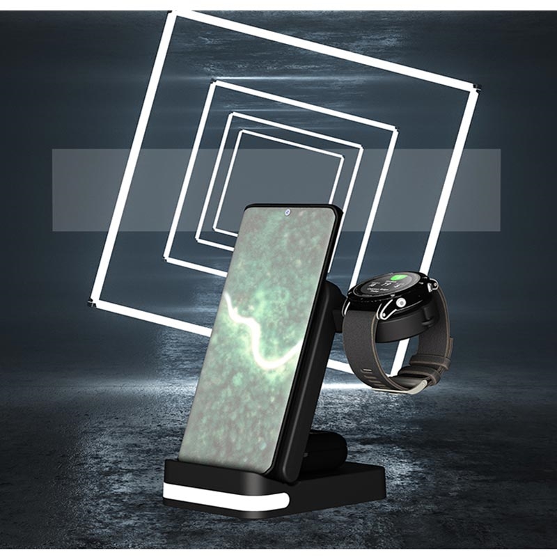 Streamline your charging setup with the B-27 3-in-1 Wireless Charger. Charge your phone, Samsung Galaxy Watch (Series 3/4/5/6/7), and earbuds all at once, while enjoying the added ambiance of a soft night light for a soothing, clutter-free environment.