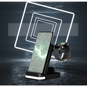 Keep your devices fully powered, organized, and your space lit with the B-27 3-in-1 Foldable Wireless Charger.