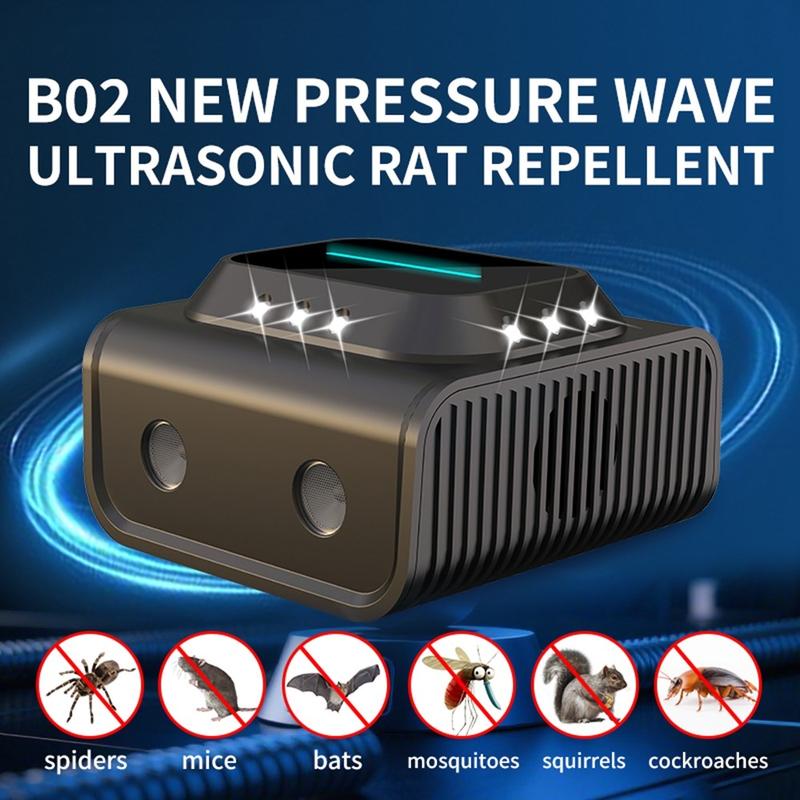 The B02 ultrasonic rodent repellent provides powerful, safe and long-lasting pest control through advanced ultrasonic and strobe technology-ideal for anyone seeking an eco-friendly, maintenance-free alternative to chemical pest treatments.