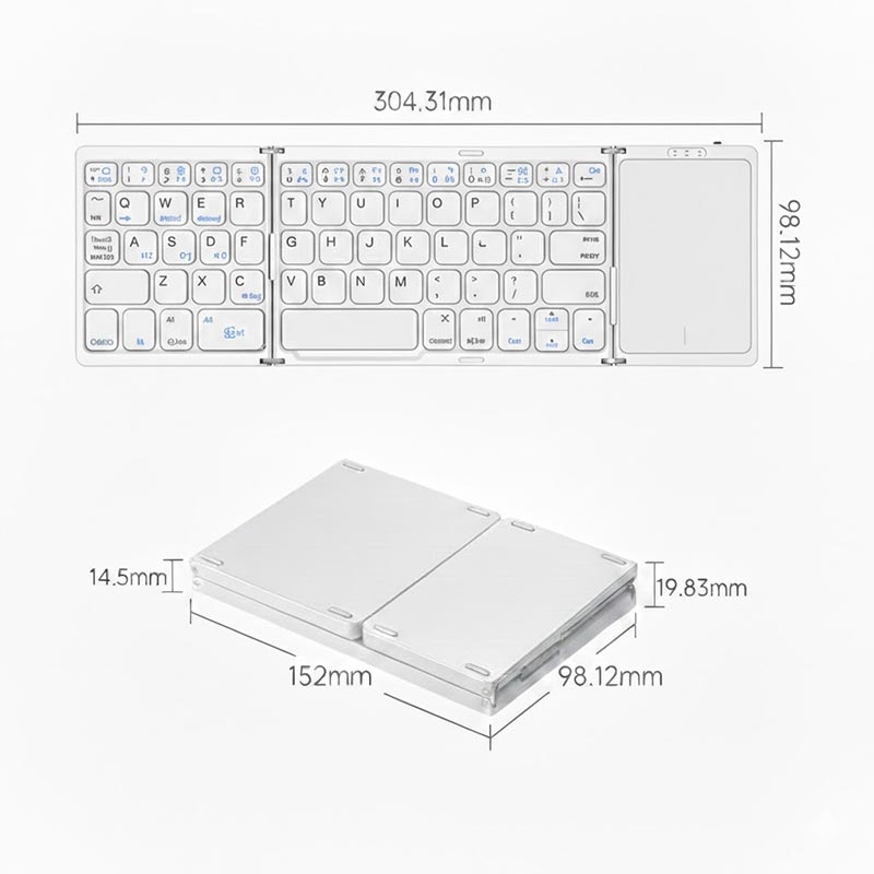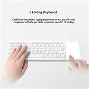 Work comfortably anywhere with the B089 Foldable Wireless Keyboard with Touchpad. Its slim tri-fold design fits easily into a laptop bag, while the built-in touchpad allows smooth navigation without a separate mouse. Designed for phones, tablets, and laptops, it is ideal for travel, remote work, and everyday productivity.