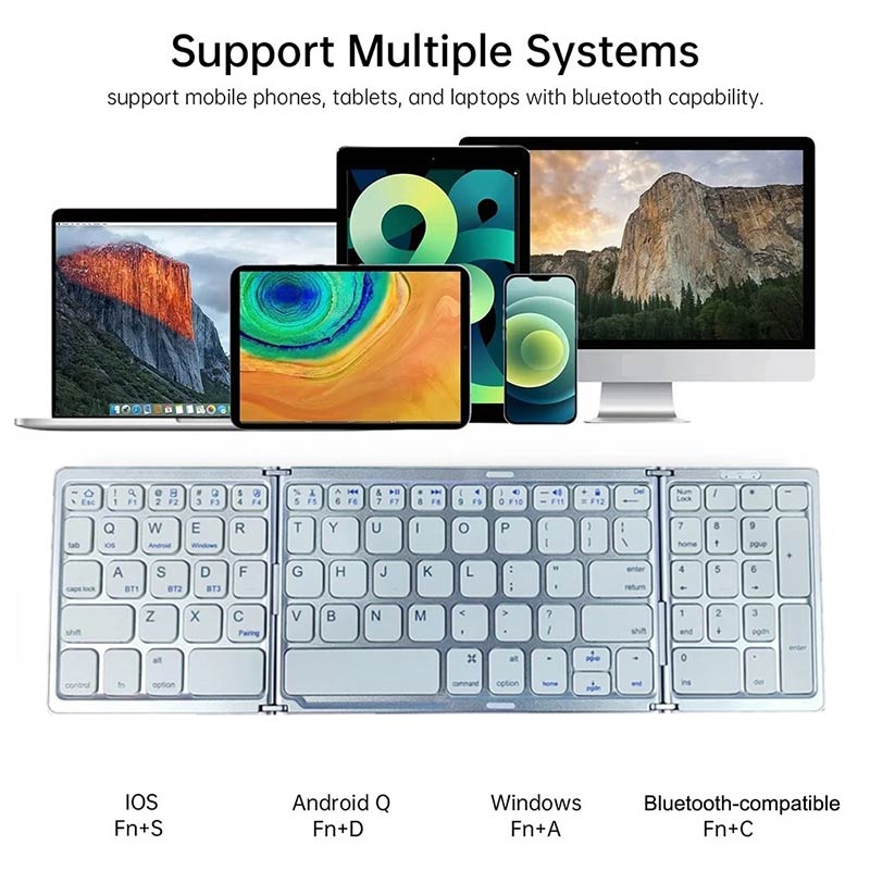 Work more comfortably wherever you are with the B089 portable tri-fold Bluetooth keyboard. Designed for flexible everyday use, this compact wireless keyboard opens into a practical full-size typing layout with a dedicated numbers area, then folds down into a smaller travel-friendly format when not in use. It is an excellent choice for mobile work, study, business trips, commuting, and home office setups.