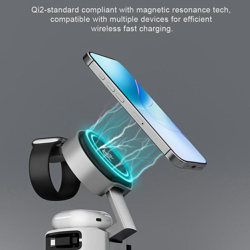 With Qi2 15W fast charging support, the charger provides secure magnetic alignment for stable wireless charging. The built-in 80cm retractable cable helps reduce clutter and makes storage easier, while the foldable design keeps the charger compact enough to fit easily in a bag or carry-on.