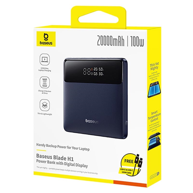 Power up in style with the Baseus Blade H1 Power Bank, a next-generation charging solution combining exceptional power with an ultra-thin design. At just 17.8 mm thick and weighing 445 g, it delivers unmatched portability without compromising performance. With a total capacity of 20000 mAh and up to 100 W output, it’s capable of charging laptops, tablets, and smartphones simultaneously — the perfect companion for travel, work, or everyday use.
