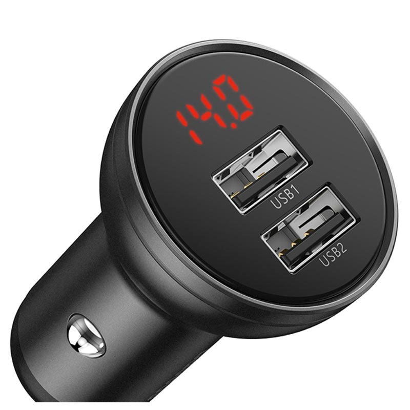 Baseus Digital Display Display Dual USB Car Charger - 24W, 5V -4.8A