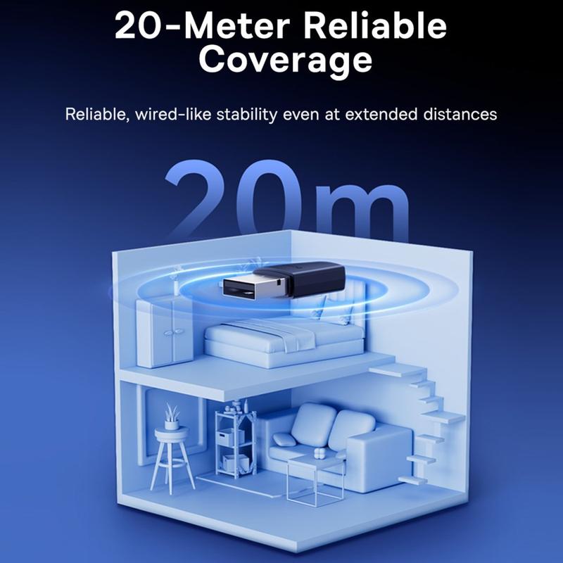 - Extended Range (20 m): Enjoy stable, clear connectivity in open spaces for flexible device placement.