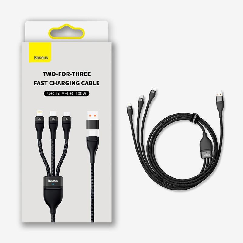 Baseus Flash Series II 100W 3-in-2 Fast Charging Cable - 1.2 m - USB-A and USB-C Input to USB-C Lightning and Micro USB, Nylon Braided