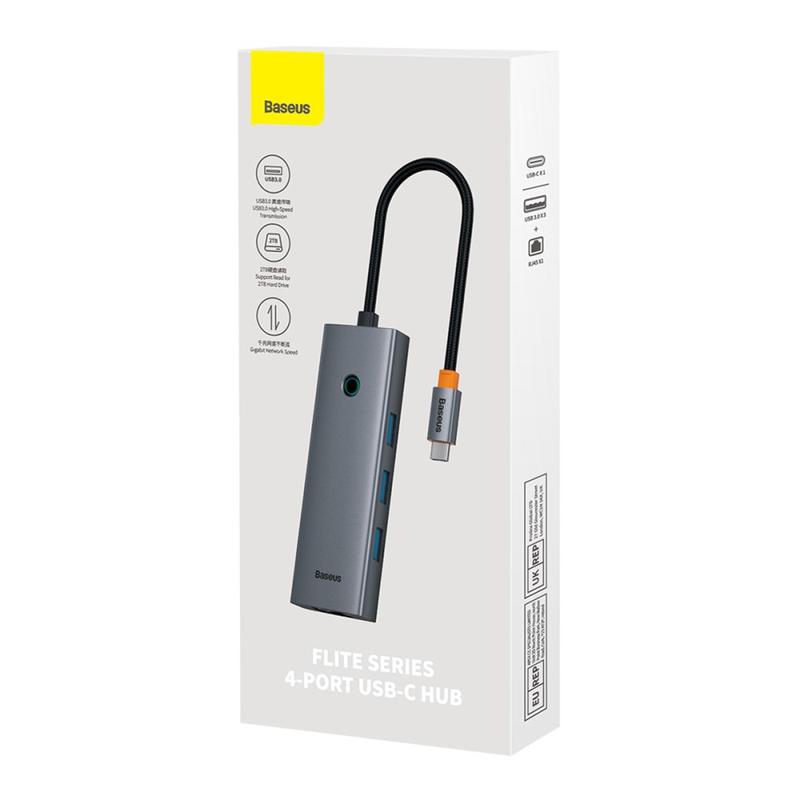 Baseus Flite BS-OH109 4-in-1 USB-C Docking Hub with with HD 4K Video Output Support - 3xUSB 3.0, RJ45 Ethernet Port - Enhance Your Work and Entertainment