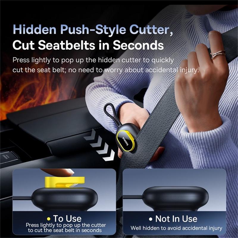 - Integrated Seat Belt Cutter: Features a concealed, razor-sharp blade capable of slicing through seat belts effortlessly, ensuring you can free yourself or passengers rapidly if restraints become jammed.