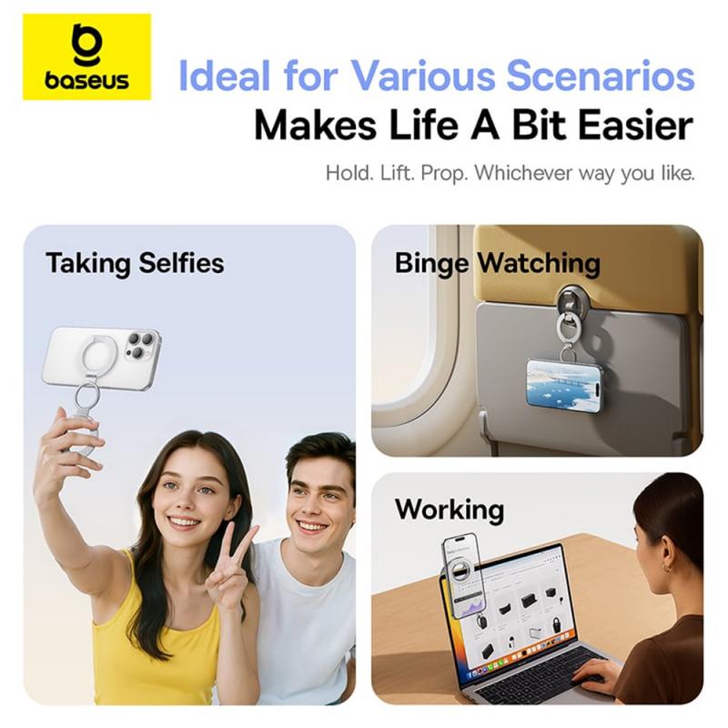 The Baseus MagPro 3 Magnetic Metal Ring is a compact, foldable phone accessory that works as both a phone grip ring and a desk stand. It helps you hold your phone more securely in one hand and prop it up for comfortable viewing at home, at work, or while traveling. With MagSafe compatibility and a slim design, it is an easy upgrade for everyday use without adding bulky parts to your setup.