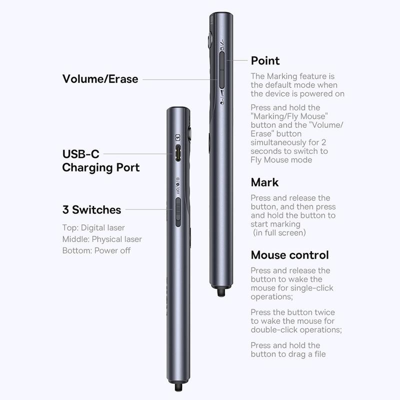 - 4-in-1 Presentation Tool: Effortlessly switch between spotlight, magnifier, mouse control, and point/erase marker functions.