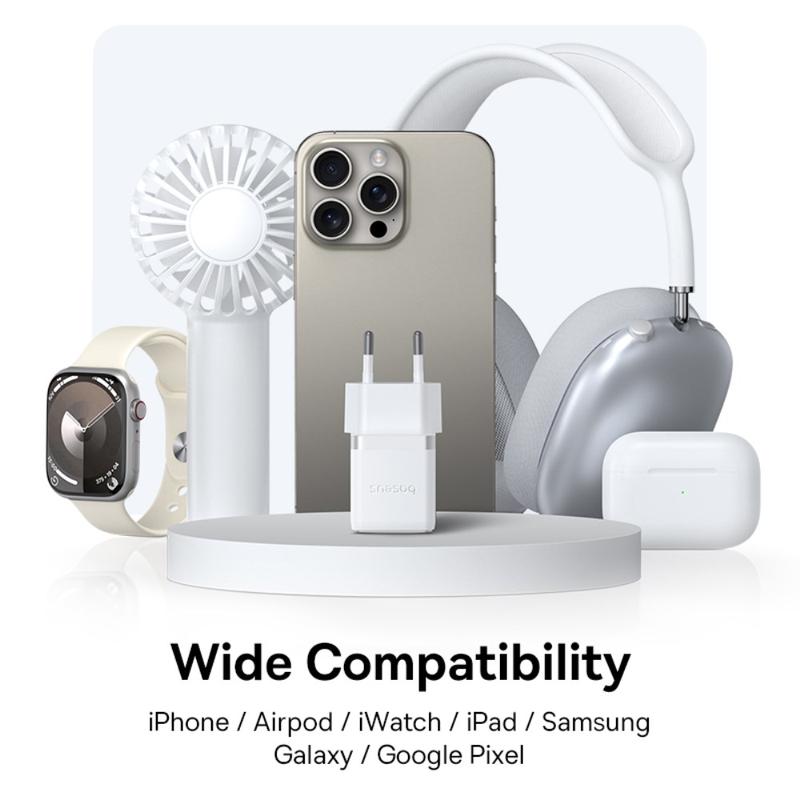 The BASEUS Palm Dual-Port 20W Fast Charger offers a potent blend of portability, high-speed charging, and device safety. It’s an essential accessory for busy individuals who need a reliable power source anywhere, anytime. The included 60W Type-C cable expands charging possibilities, letting you power up both older devices via USB-A and newer gadgets via Type-C.