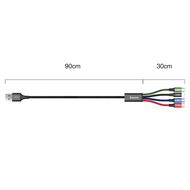 Udržujte všechna svá zařízení nabita z tohoto nabíjecího kabelu Baseus Rapid Series 4-in-1. Tento nabíjecí kabel USB je navržen se čtyřmi konektory a může nabíjet více zařízení najednou. Zahrnuje jeden konektor Micro USB, jeden konektor Lightning a dva konektory typu C. S těmito univerzálními kabely více nabíjení USB budete moci udržet všechny své gadgety nabité a synchronizaci za všech okolností.