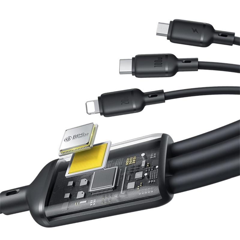 Baseus Silky 3-in-1 USB-C to Lightning, USB-C, MicroUSB Fast Charging Cable – 100W/1.5m