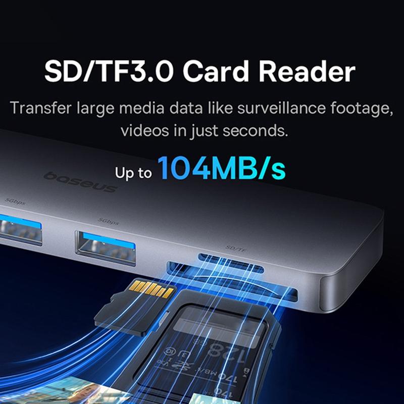 Baseus UltraJoy 6-Port USB-C Hub - 3x USB-A, USB-C, Micro SD/TF Card Slots