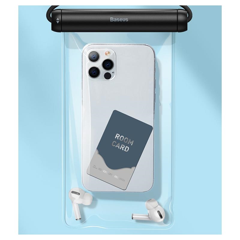 Vodotěsný pouzdro na válce Baseus je vybaven popruhem na krk z bavlněného krku, který vám umožní pohodlně plavat nebo ponořit s telefonem. Díky vodotěsnému hodnocení IPX8 bude váš telefon zcela suchý a bez poškození.