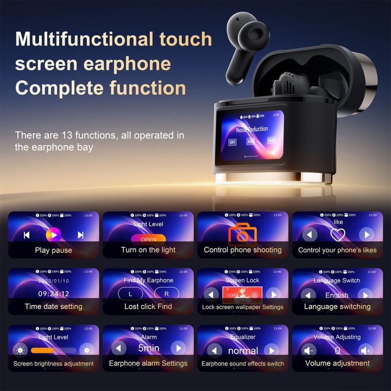 BD2 Smart Digital Display Wireless Headphones / TWS Earphones with Charging Case - Touch Screen, ANC & ENC Noise Cancelling