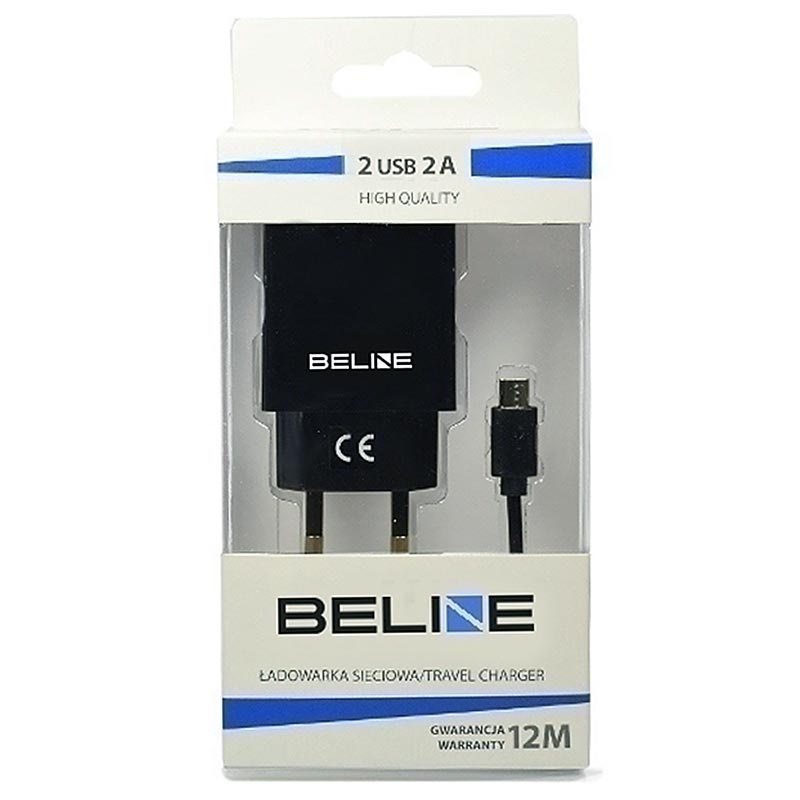 Beline Universal Dual-Port Charger & MicroUSB kabel-EU Plug, 2 x USB-A 5V/1A, 1M