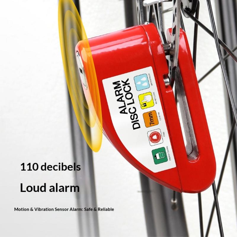 Disc brake alarm locks combine mechanical resistance with sound-based deterrence. A 110 dB alarm is comparable to the volume of a live concert, making it highly noticeable in public areas. Aluminum alloy bodies are commonly used in security devices because they offer strong impact resistance while remaining lightweight for portability.
