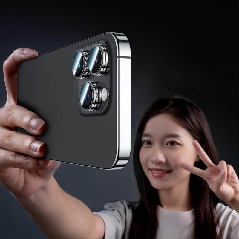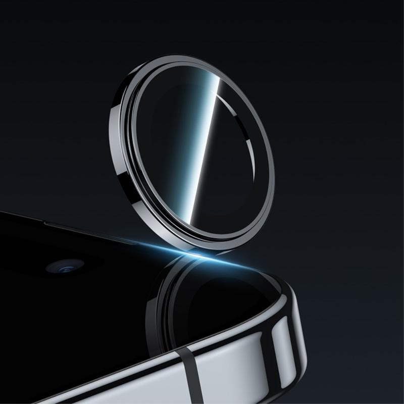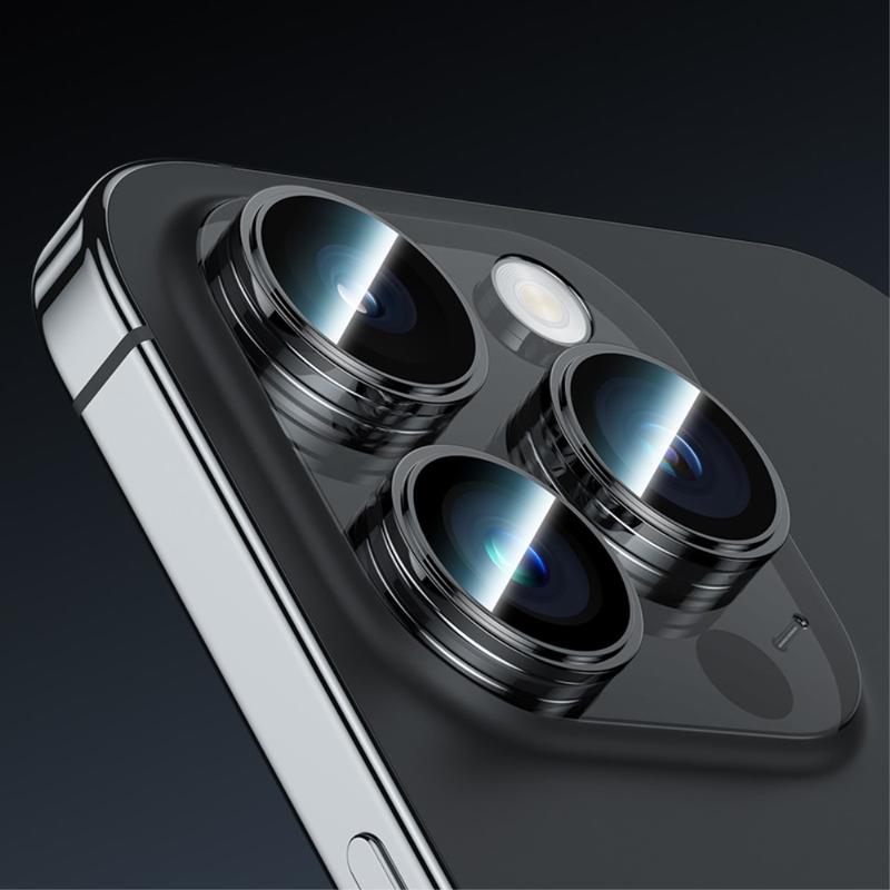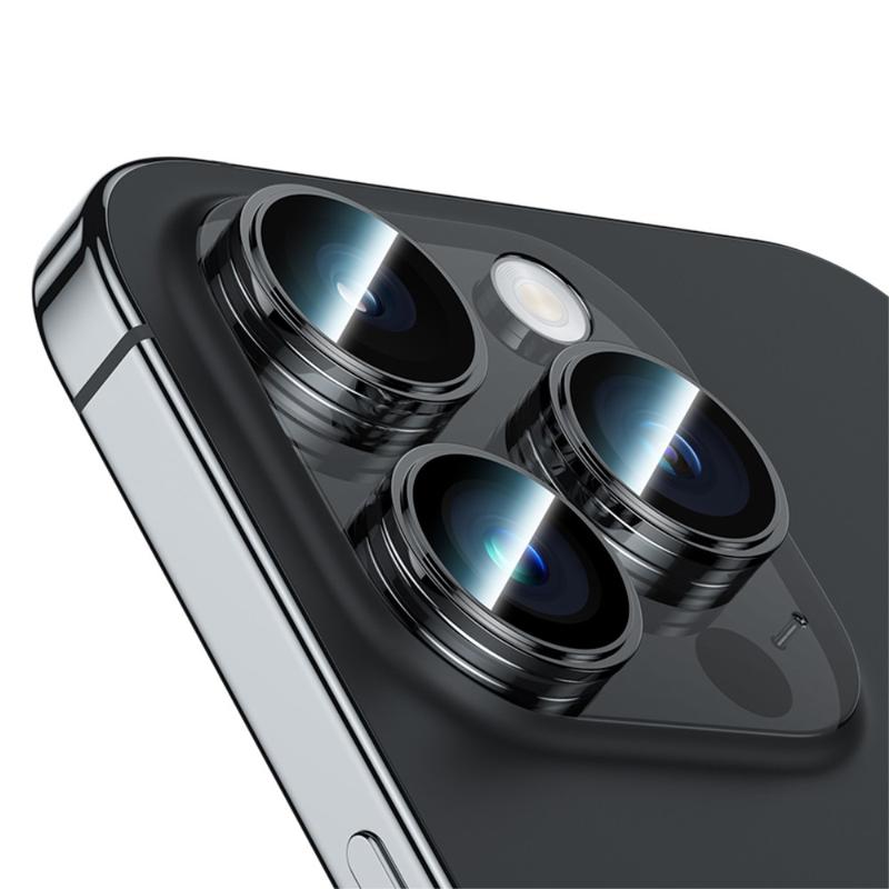 BENKS 3ks / sada ochranných fólií na objektiv fotoaparátu pro iPhone 15 Pro / 15 Pro Max Corming Grila Glass Lens Film s rámečkem z hliníkové slitiny - černá