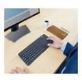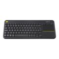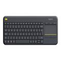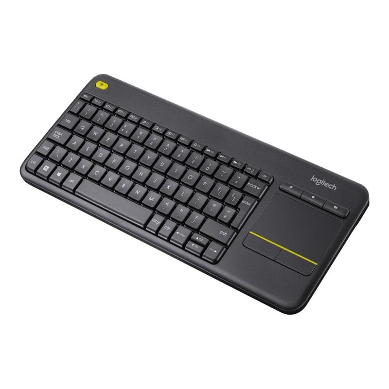Bezdrátová dotyková klávesnice K400 Plus je rozložení klávesnice v plné velikosti a touchpad v kompaktní velikosti. Zakřivené klávesy jsou ideální pro dotykové písaře a díky měkkému úhozu je tato klávesnice tichá. Touchpad plné velikosti vám poskytuje známá posouvací a navigační gesta. Díky tlačítkům levého a pravého tlačítka pod touchpadem a tlačítkům ovládání hlasitosti nad nimi máte ovládání na dosah ruky. Pro ovládání oběma rukama, které obvykle používají ti, kteří k navigaci rádi používají palec, je levé tlačítko myši umístěno v levé horní části klávesnice – procházejte pravou rukou, vybírejte levou.