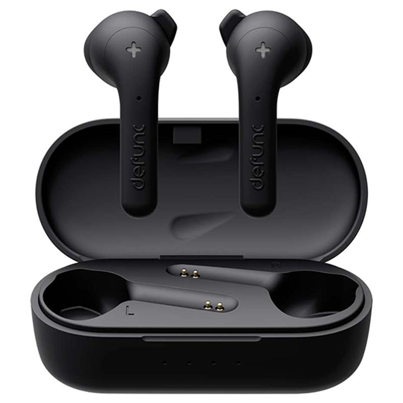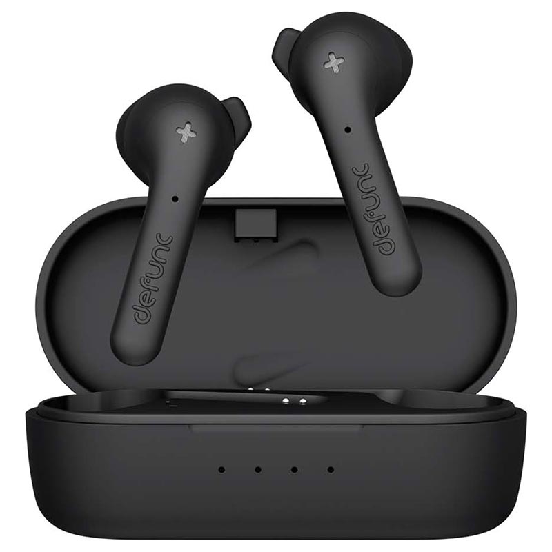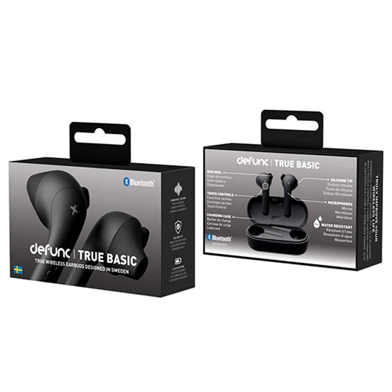 - Tato sluchátka Defunc True Basic, spárovaná s nabíjecím pouzdrem, poskytují až 12 hodin celkové doby přehrávání