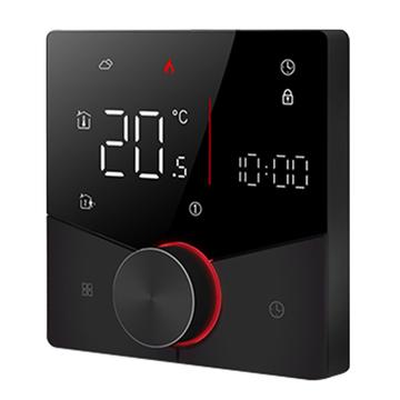 This thermostat features a stylish ultra-thin embedded panel that fits neatly into the wall for a clean and modern finish. The frameless front with rounded corners gives it a refined look that blends easily with different interior styles. Its LED display screen provides clear visibility for temperature readings and settings, while the capacitive touch buttons allow smooth and precise operation with a simple tap.