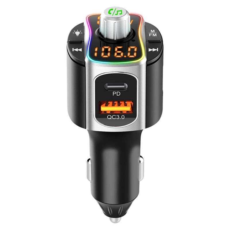 Bluetooth FM vysílač a rychlá nabíječka automobilů s LED Light BC67-USB-A QC 3.0, USB-C PD, 15W