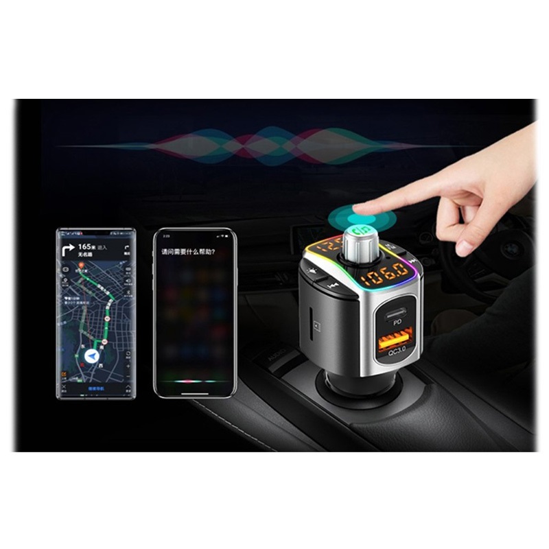 - Bluetooth FM vysílač/nabíječka automobilů podporuje funkci hlasového asistenta