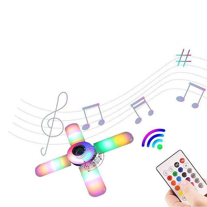 E27 Bluetooth Music Ceiling Lamp - 4-Leaf Foldable RGB Color-Changing Light with Speaker