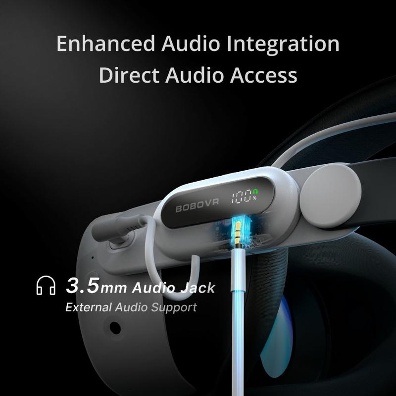 Elevate your Meta Quest 3/3S experience with the BOBOVR E3 Pro Head Strap, combining extended battery life, superior comfort, and versatile audio connectivity for an unparalleled virtual reality adventure.